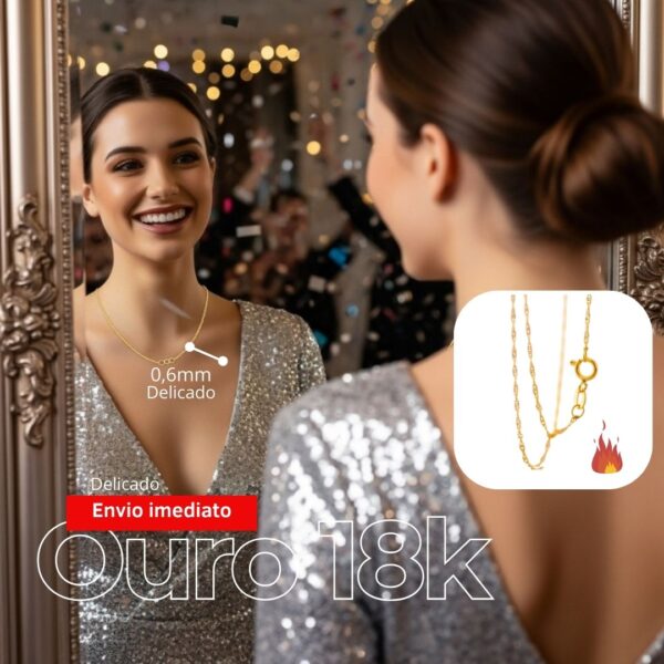 ✨ Singapura Shushunova: Homenagem à coragem e ousadia, corrente de ouro 18k delicada e luminosa que reflete movimento e brilho UNICO.