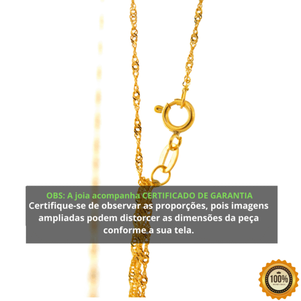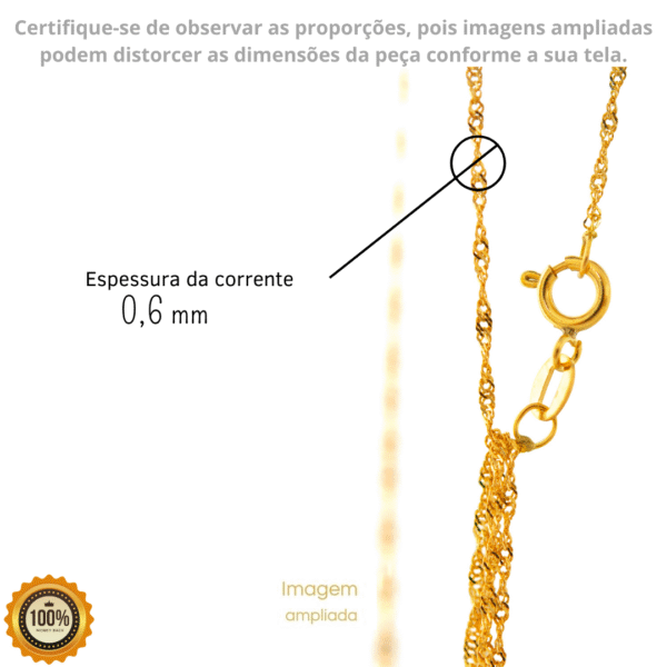 Escolher o tamanho certo é essencial para que a sua joia fique perfeita e confortável. Pensando nisso, incluímos uma segunda imagem no anúncio que te ajuda a medir corretamente o tamanho do colar de acordo com a sua fisiologia.